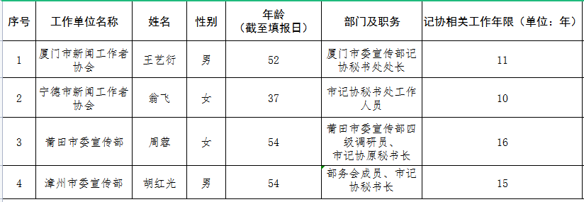為充分體現黨對廣大記協工作者的關心和關懷,進一步增強記協工作者使命感、榮譽感和自豪感,引導和激勵廣大記協工作者更好為新聞輿論事業服務,根據2020年修訂的《資深記協工作者榮譽證書證章頒發辦法》,今年將向在本職崗位上工作10周年以上記協工作者頒發榮譽證書證章。 現將福建省本批擬上報的在本職崗位上工作十周年以上的記協工作者名單予以公示,公示期為11月15日—11月19日。社會各界若有意見或建議,請與福建省新聞工作者協會聯系。電話:0591-87856172。 附件:2021年資深記協工作者榮譽證書證章申報人員名單
